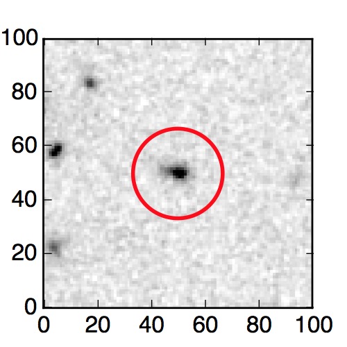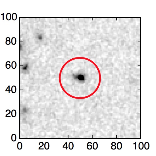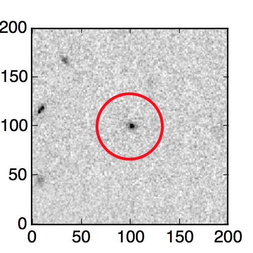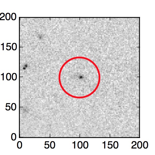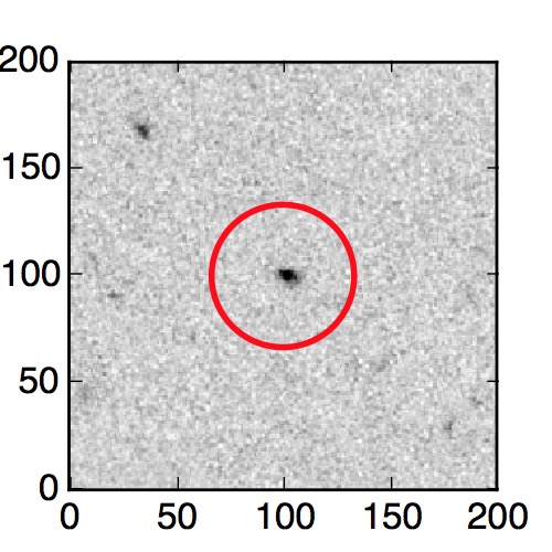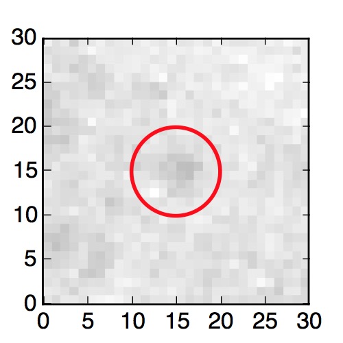 The red circle in the various panels is 1" in radius. The images are 6"x6".