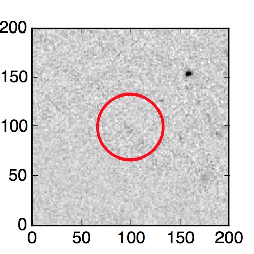The red circle in the various panels is 1" in radius. The images are 6"x6".