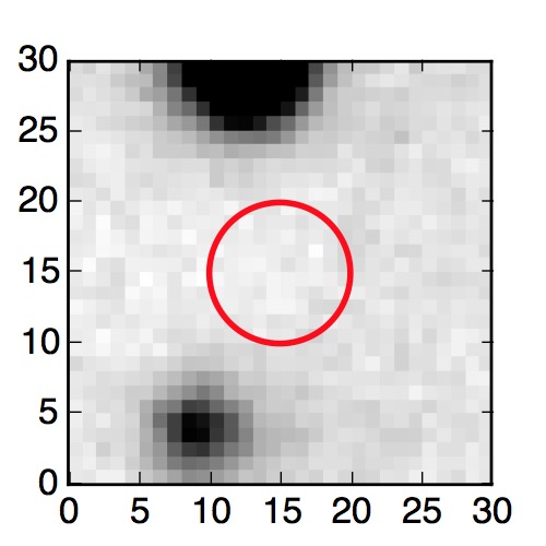 The red circle in the various panels is 1" in radius. The images are 6"x6".