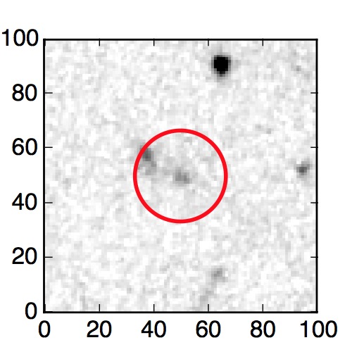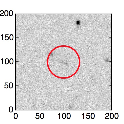 The red circle in the various panels is 1" in radius. The images are 6"x6".