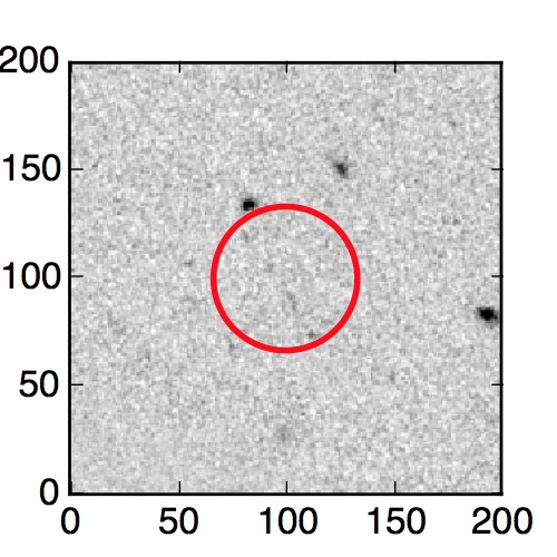 The red circle in the various panels is 1" in radius. The images are 6"x6".