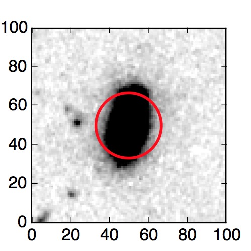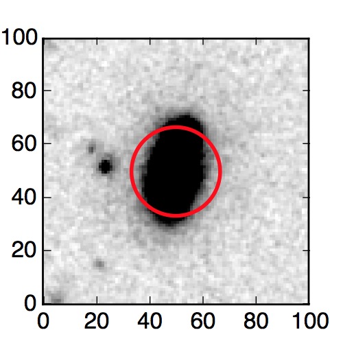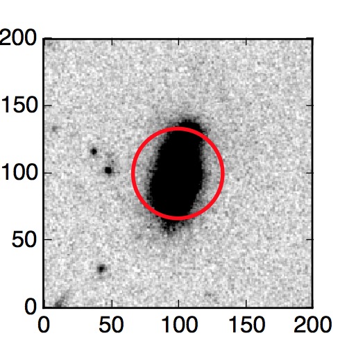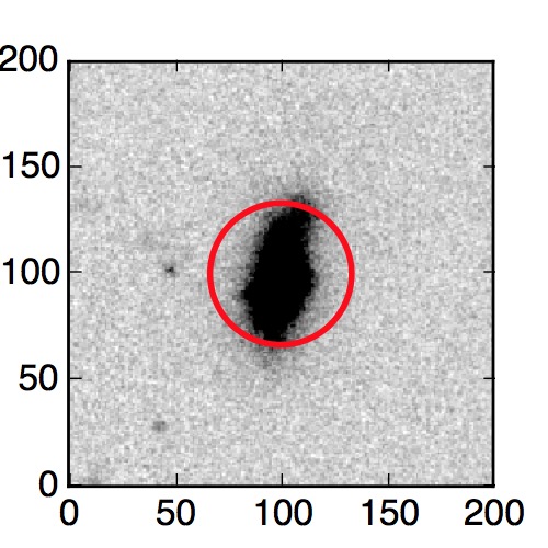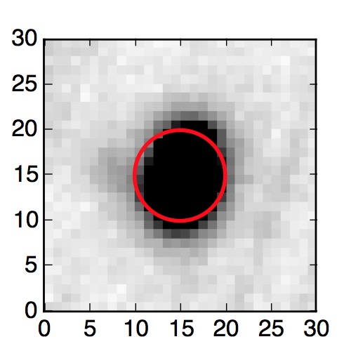 The red circle in the various panels is 1" in radius. The images are 6"x6".