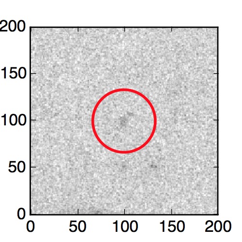 The red circle in the various panels is 1" in radius. The images are 6"x6".
