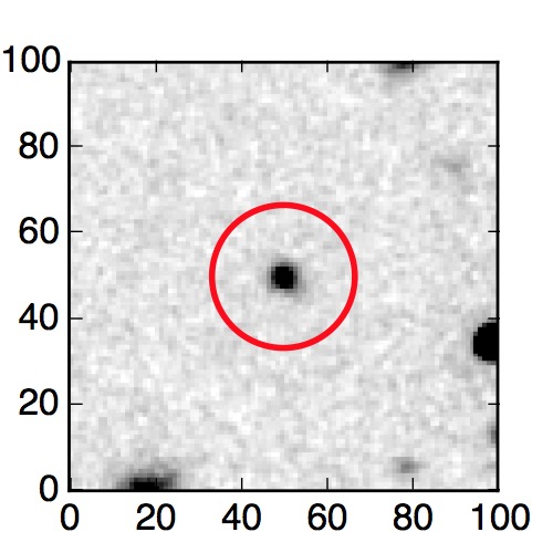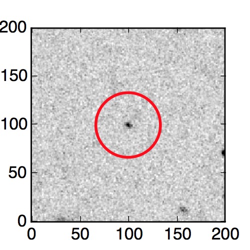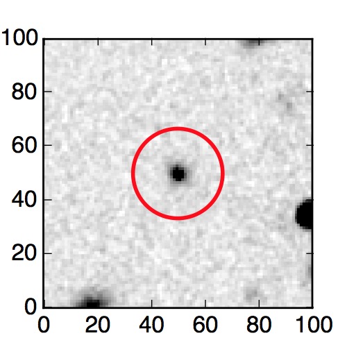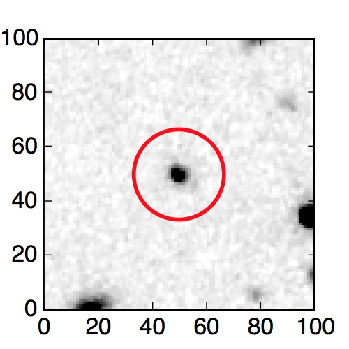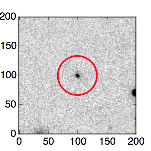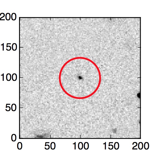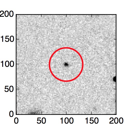 The red circle in the various panels is 1" in radius. The images are 6"x6".