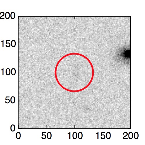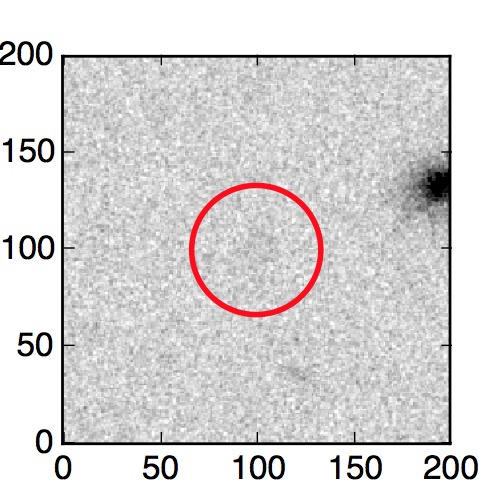 The red circle in the various panels is 1" in radius. The images are 6"x6".