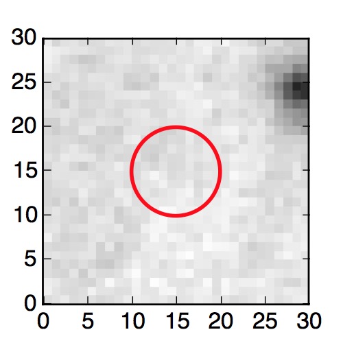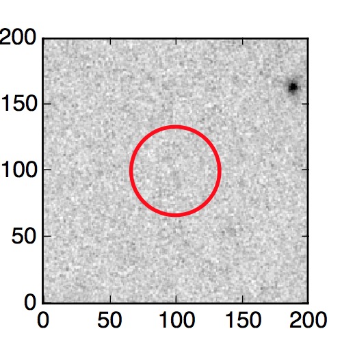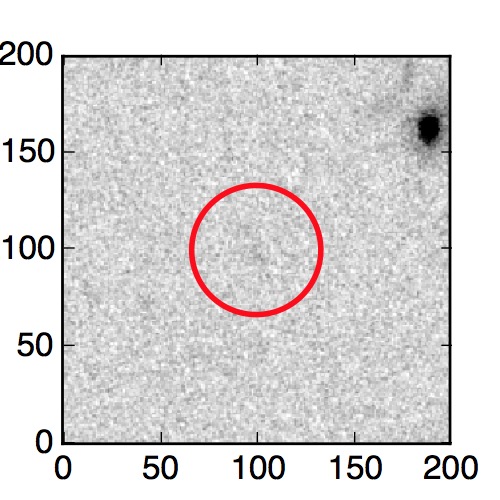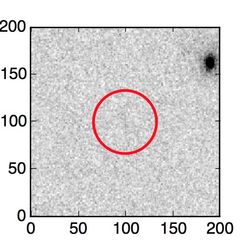 The red circle in the various panels is 1" in radius. The images are 6"x6".