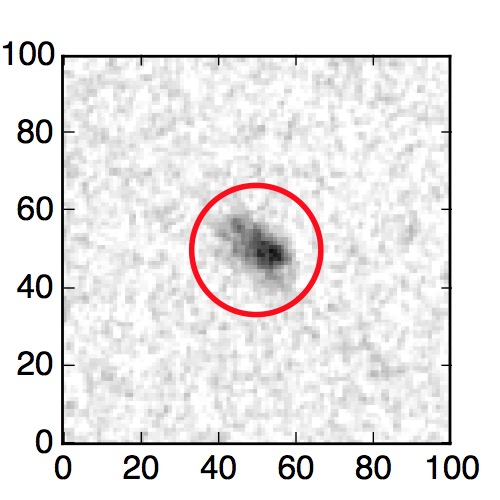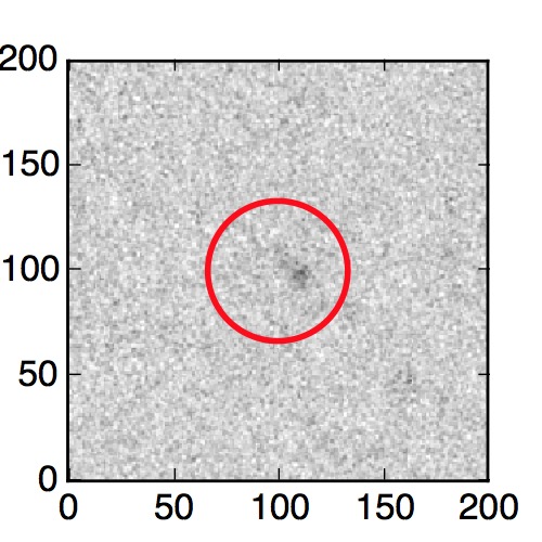 The red circle in the various panels is 1" in radius. The images are 6"x6".