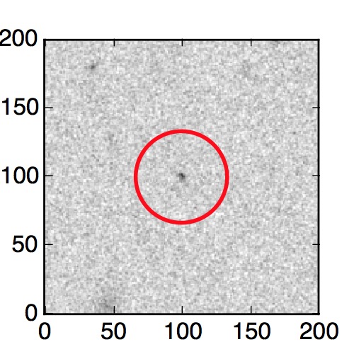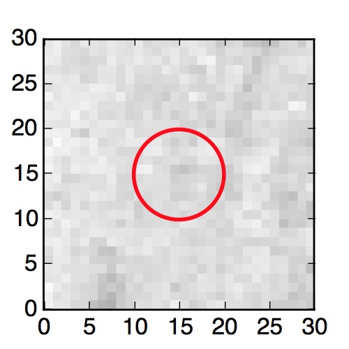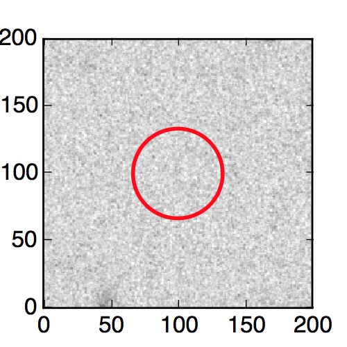 The red circle in the various panels is 1" in radius. The images are 6"x6".