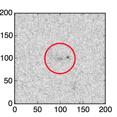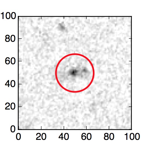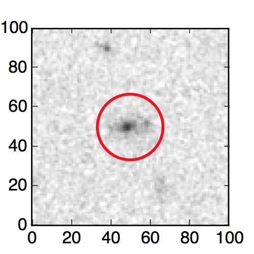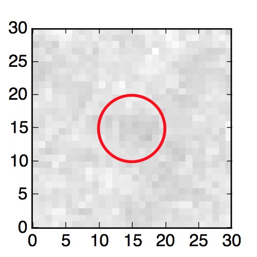 The red circle in the various panels is 1" in radius. The images are 6"x6".