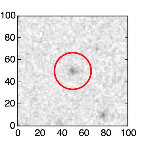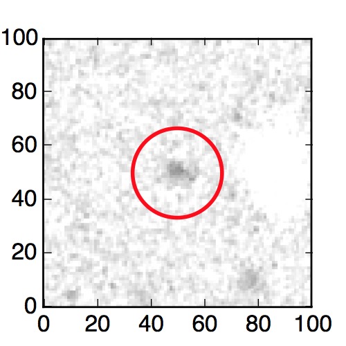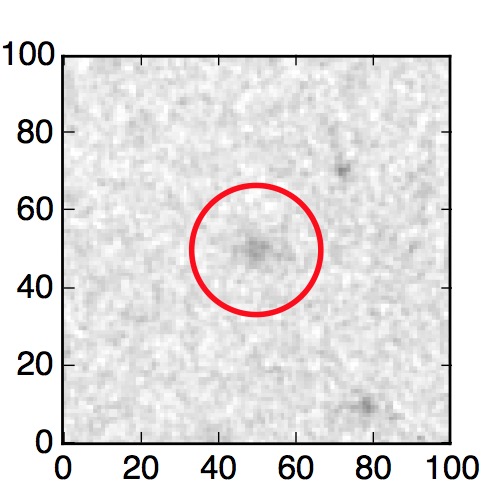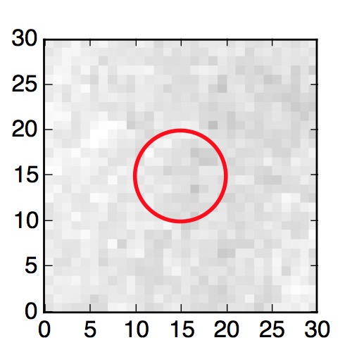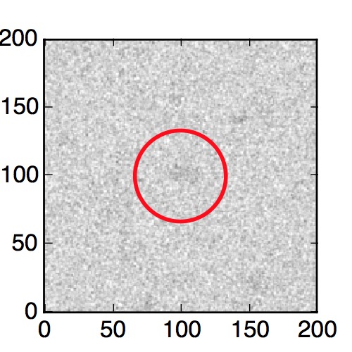 The red circle in the various panels is 1" in radius. The images are 6"x6".
