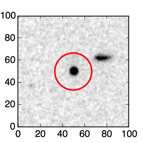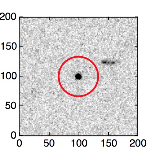 The red circle in the various panels is 1" in radius. The images are 6"x6".