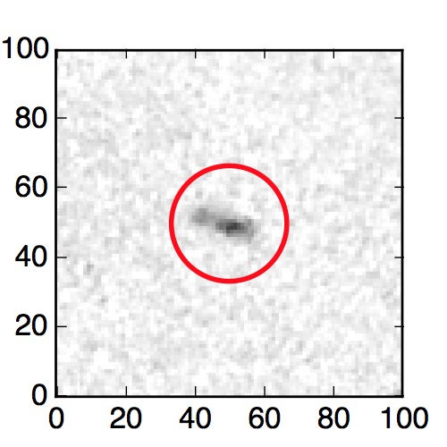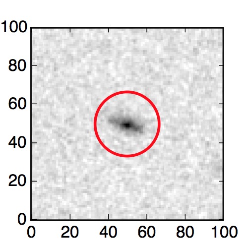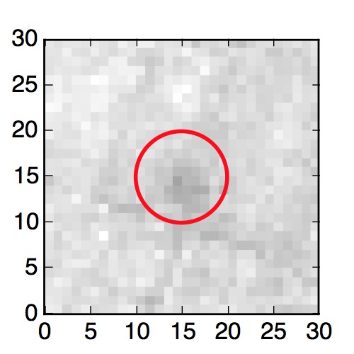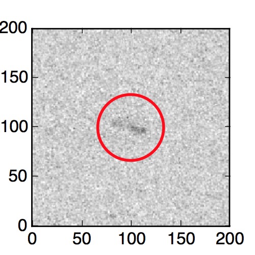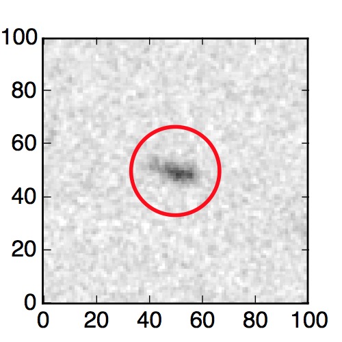 The red circle in the various panels is 1" in radius. The images are 6"x6".
