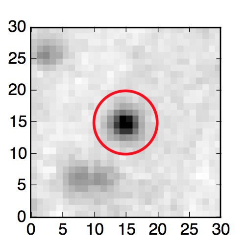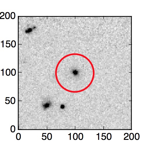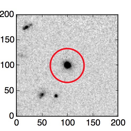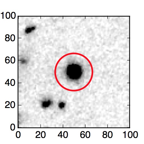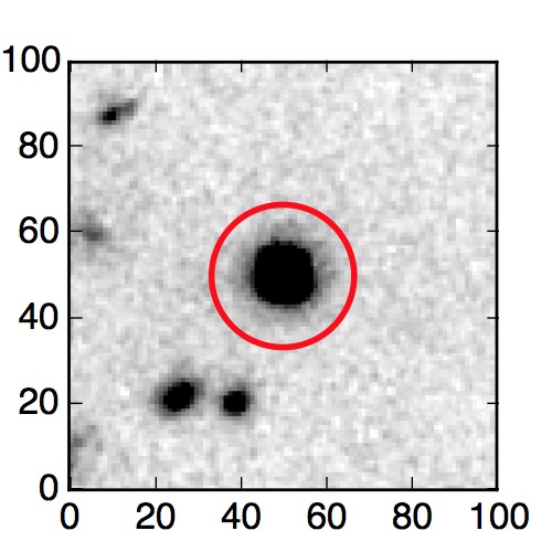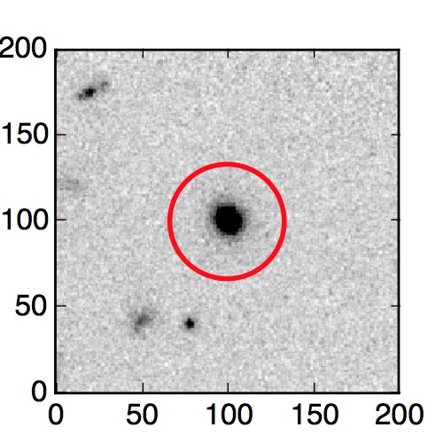 The red circle in the various panels is 1" in radius. The images are 6"x6".