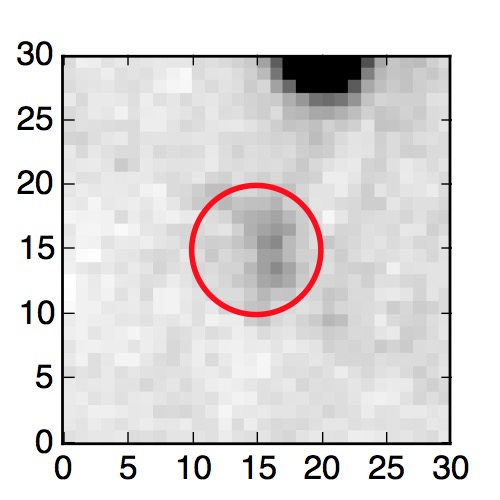 The red circle in the various panels is 1" in radius. The images are 6"x6".