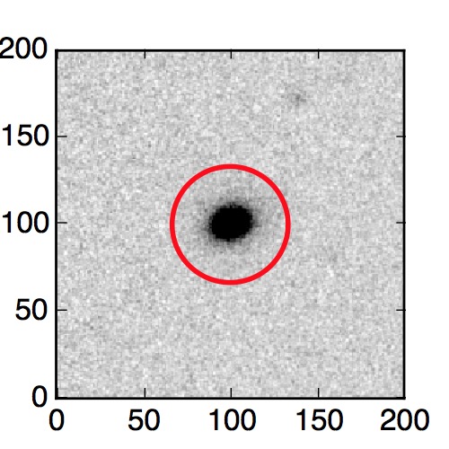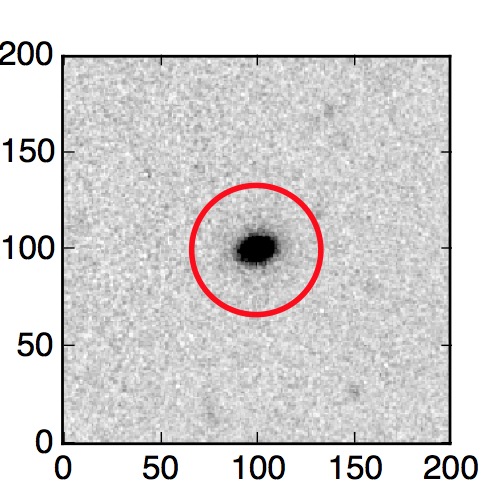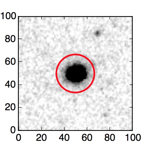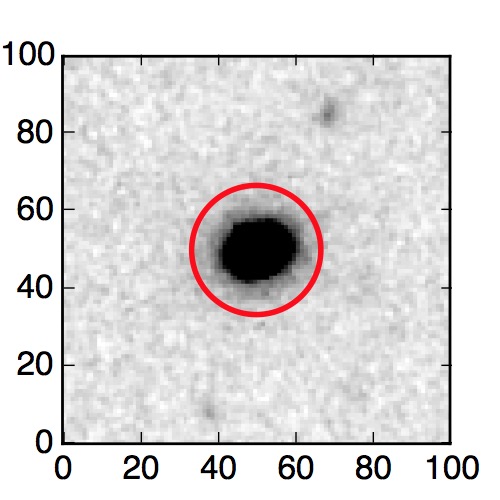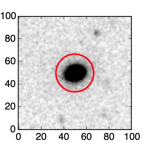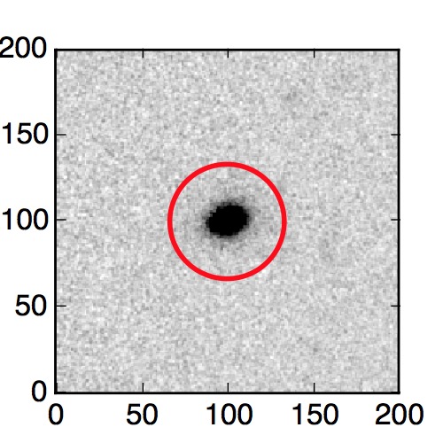 The red circle in the various panels is 1" in radius. The images are 6"x6".