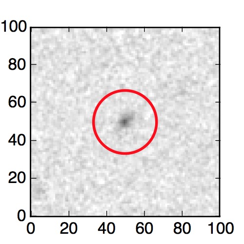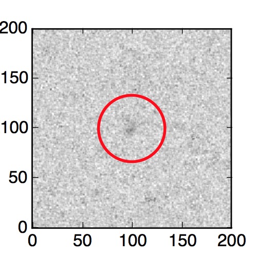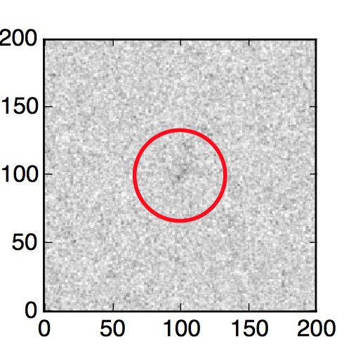 The red circle in the various panels is 1" in radius. The images are 6"x6".