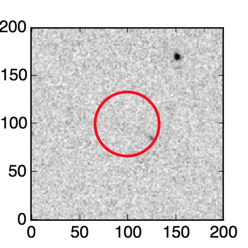 The red circle in the various panels is 1" in radius. The images are 6"x6".