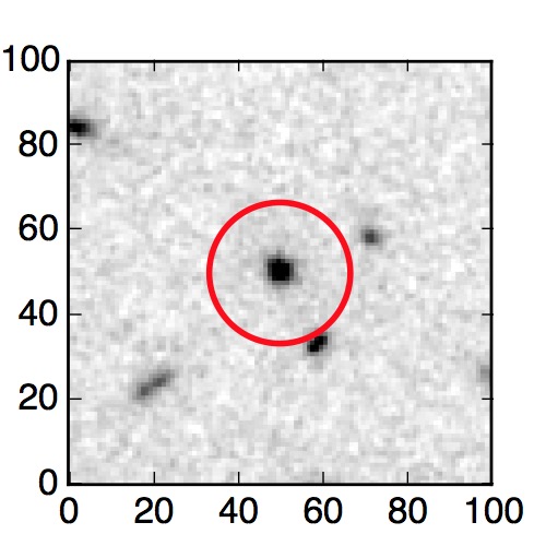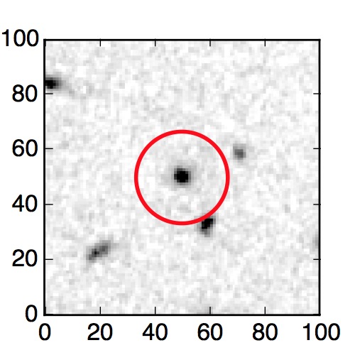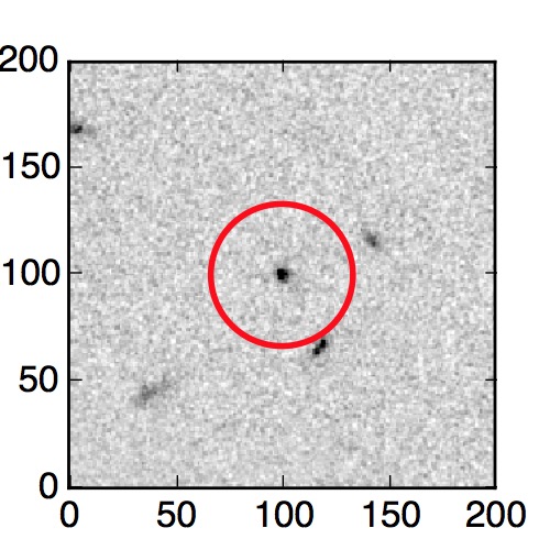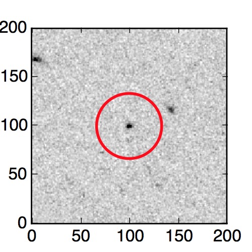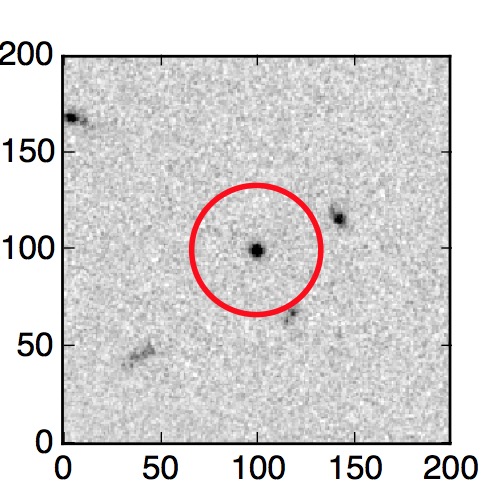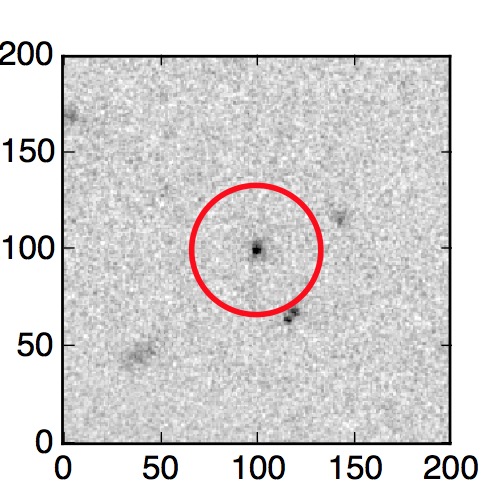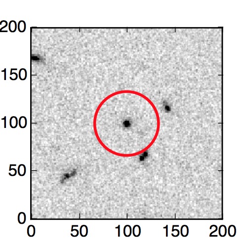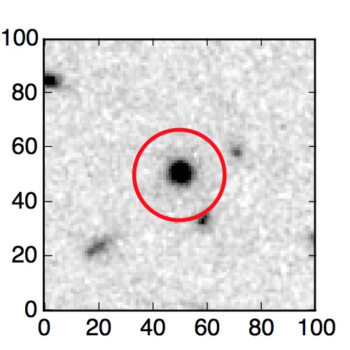 The red circle in the various panels is 1" in radius. The images are 6"x6".