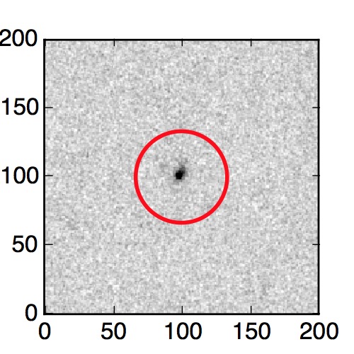 The red circle in the various panels is 1" in radius. The images are 6"x6".