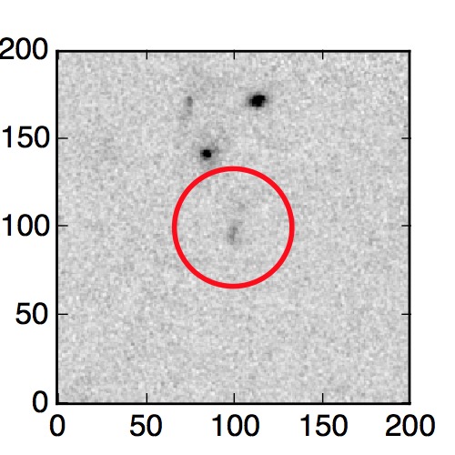 The red circle in the various panels is 1" in radius. The images are 6"x6".