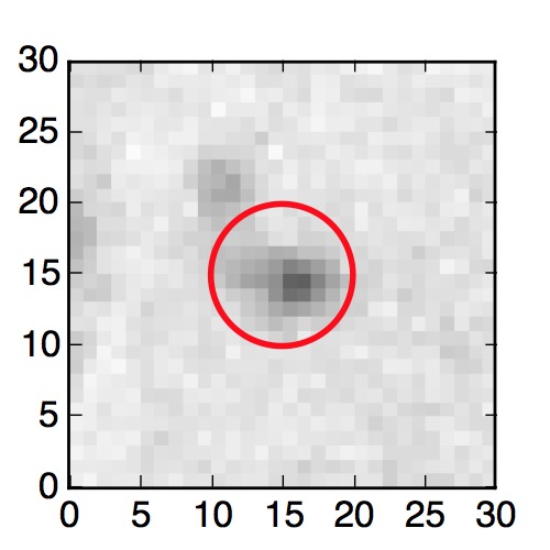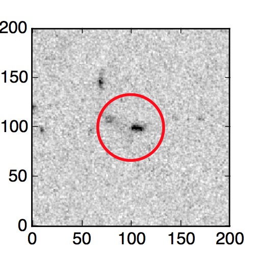 The red circle in the various panels is 1" in radius. The images are 6"x6".