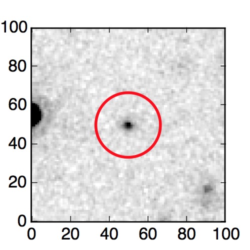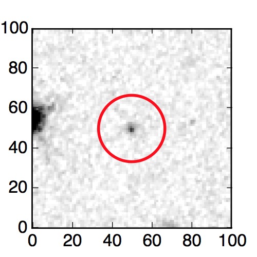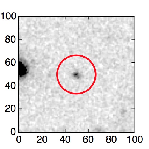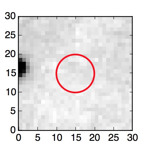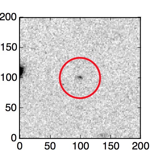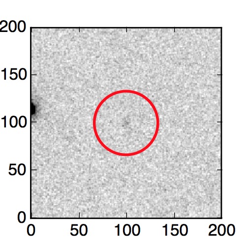 The red circle in the various panels is 1" in radius. The images are 6"x6".