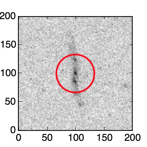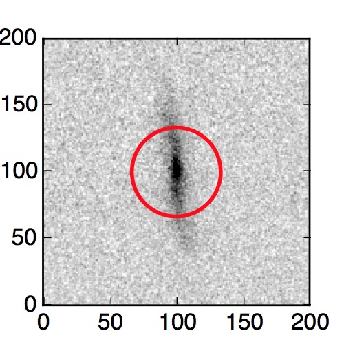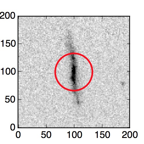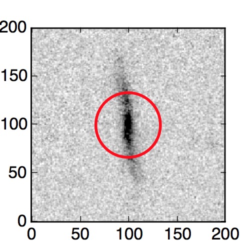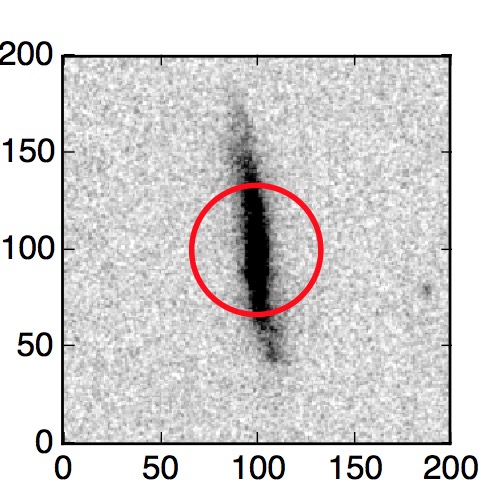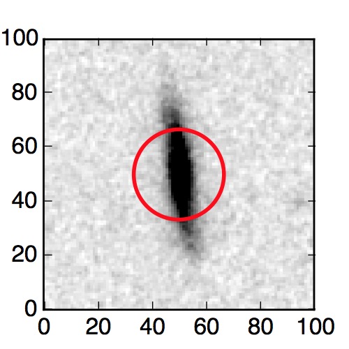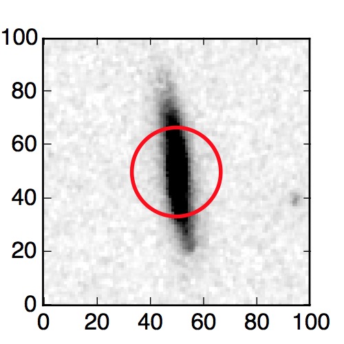 The red circle in the various panels is 1" in radius. The images are 6"x6".