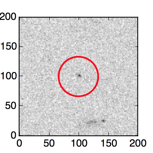 The red circle in the various panels is 1" in radius. The images are 6"x6".