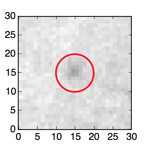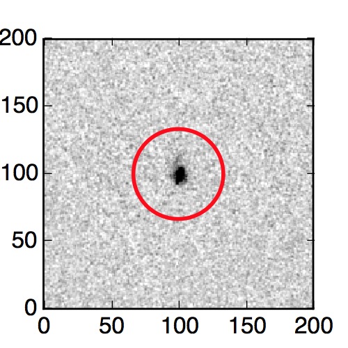 The red circle in the various panels is 1" in radius. The images are 6"x6".