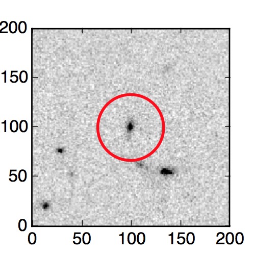 The red circle in the various panels is 1" in radius. The images are 6"x6".