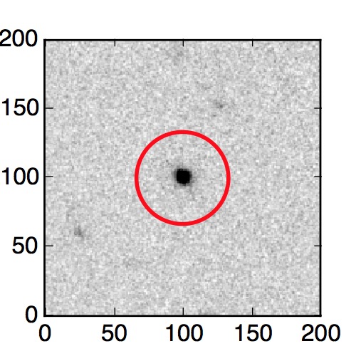 The red circle in the various panels is 1" in radius. The images are 6"x6".