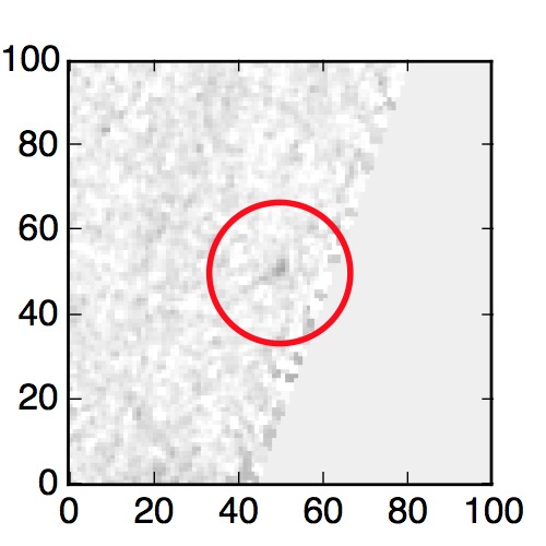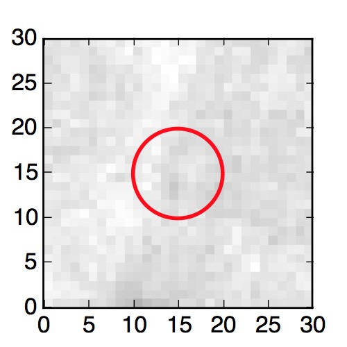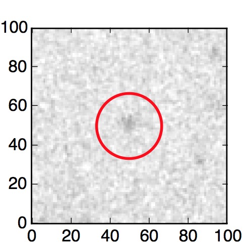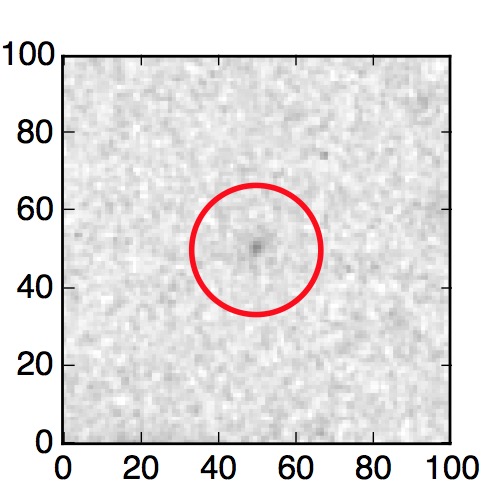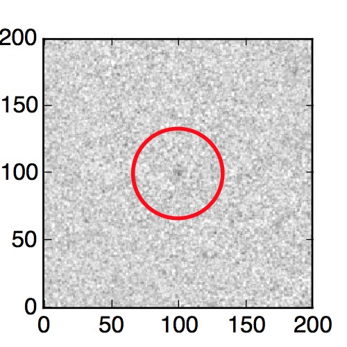 The red circle in the various panels is 1" in radius. The images are 6"x6".
