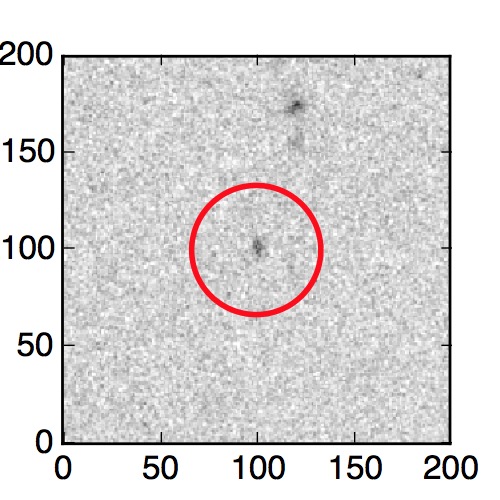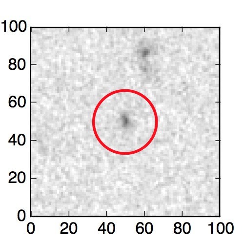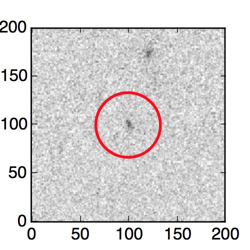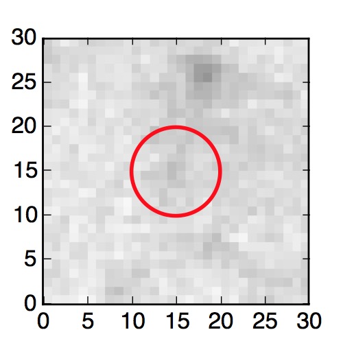 The red circle in the various panels is 1" in radius. The images are 6"x6".