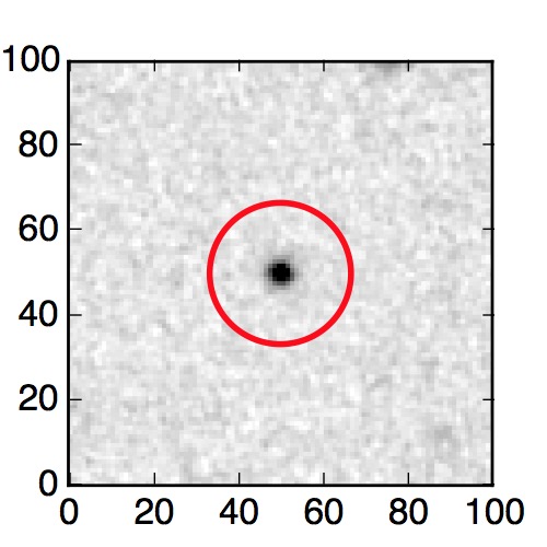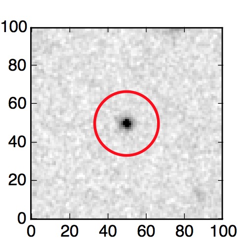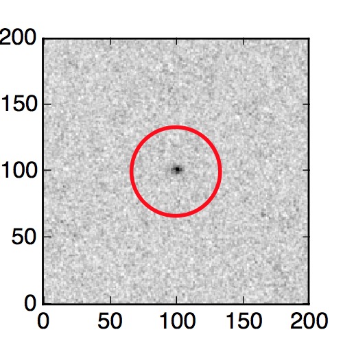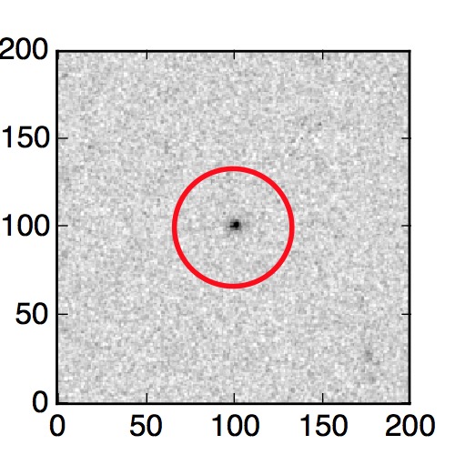 The red circle in the various panels is 1" in radius. The images are 6"x6".