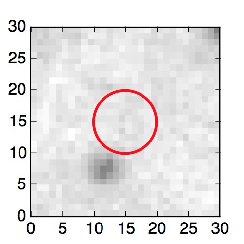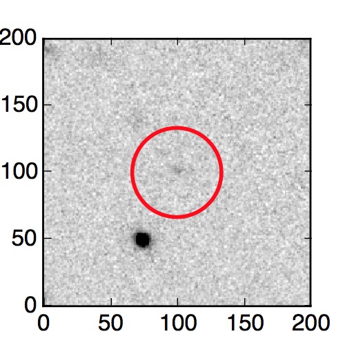 The red circle in the various panels is 1" in radius. The images are 6"x6".