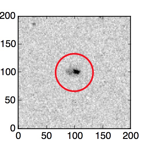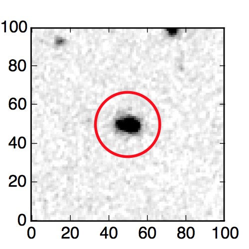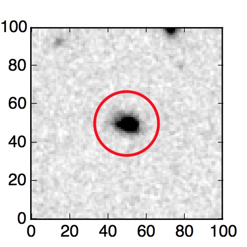 The red circle in the various panels is 1" in radius. The images are 6"x6".