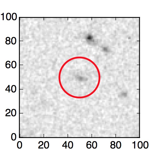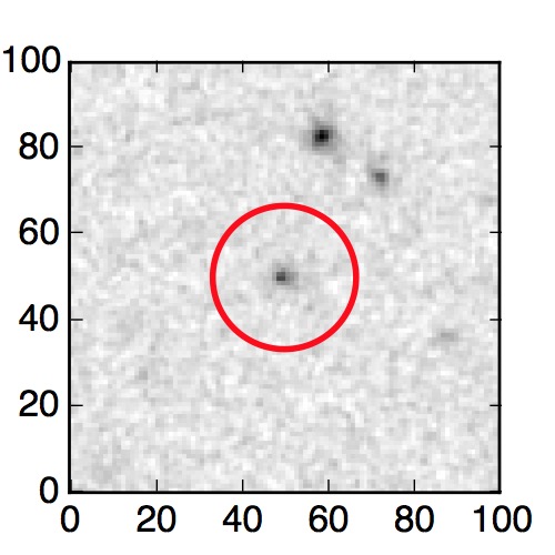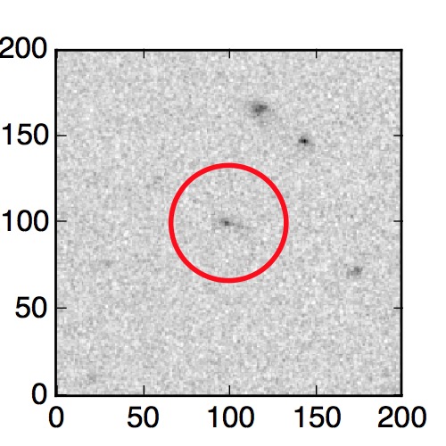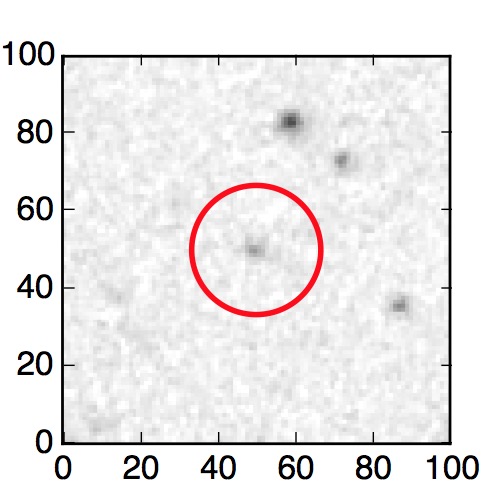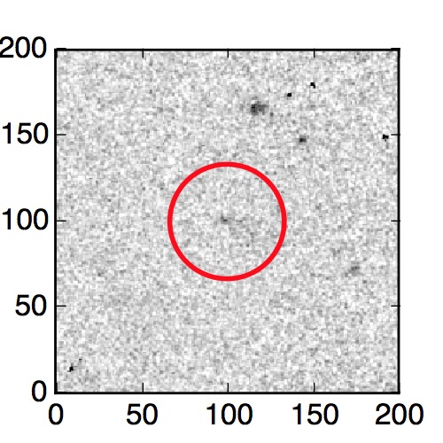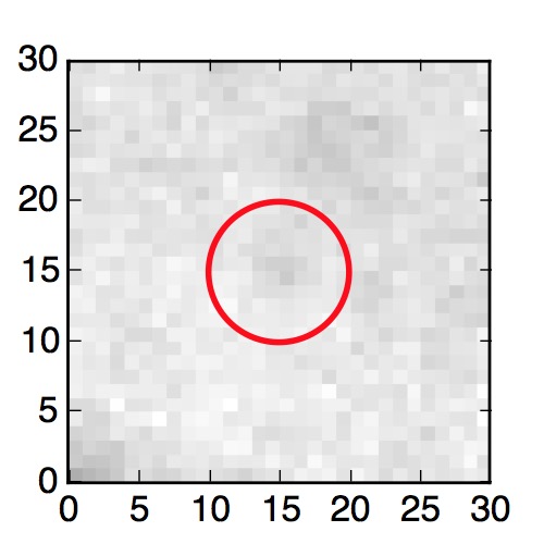 The red circle in the various panels is 1" in radius. The images are 6"x6".