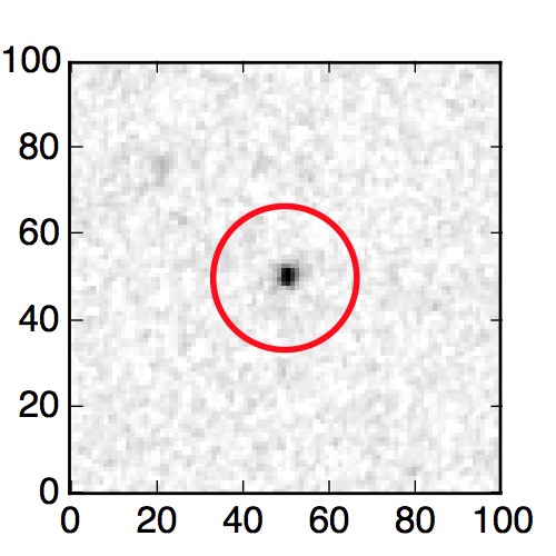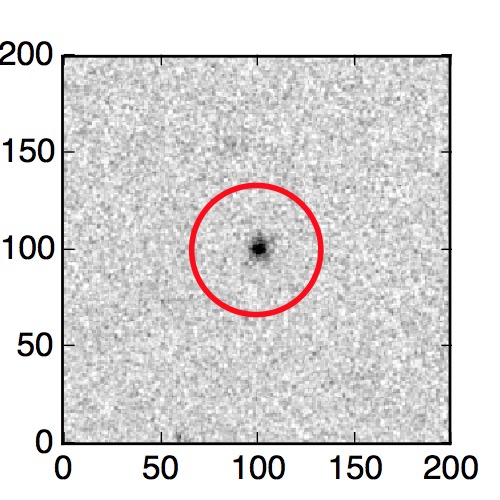 The red circle in the various panels is 1" in radius. The images are 6"x6".