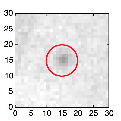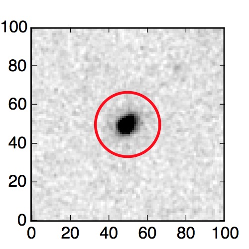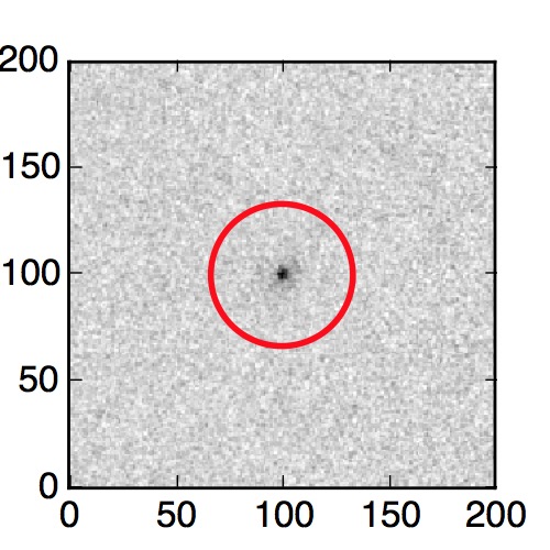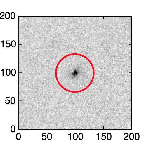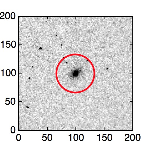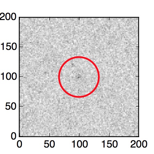 The red circle in the various panels is 1" in radius. The images are 6"x6".