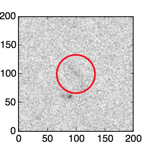 The red circle in the various panels is 1" in radius. The images are 6"x6".