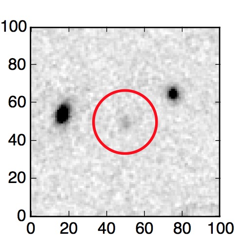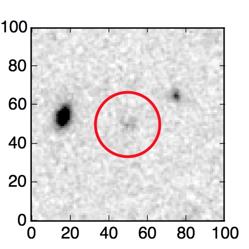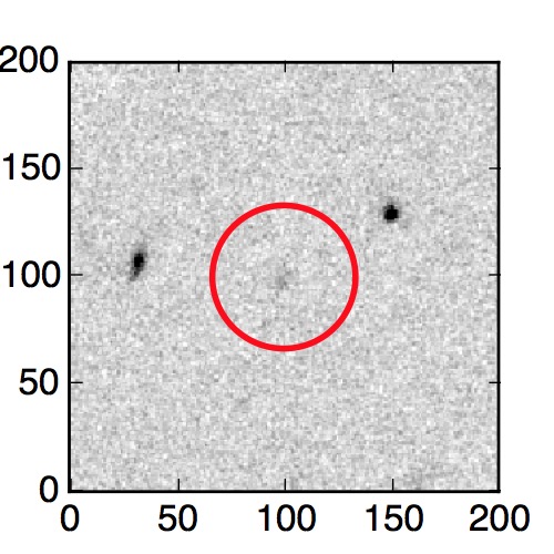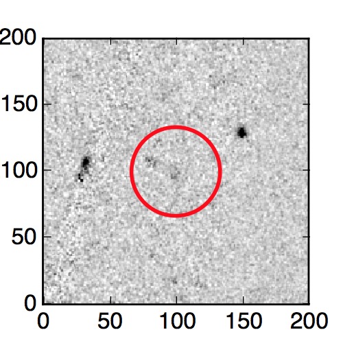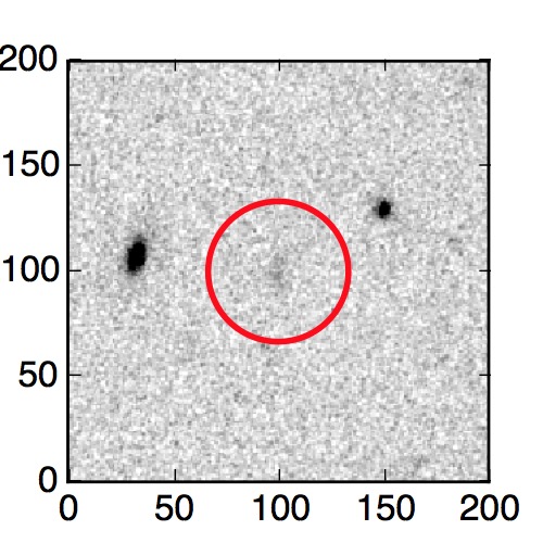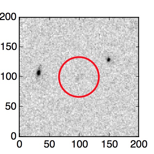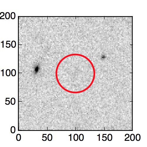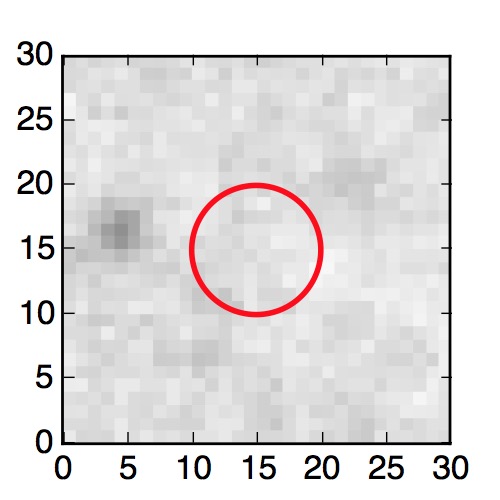 The red circle in the various panels is 1" in radius. The images are 6"x6".