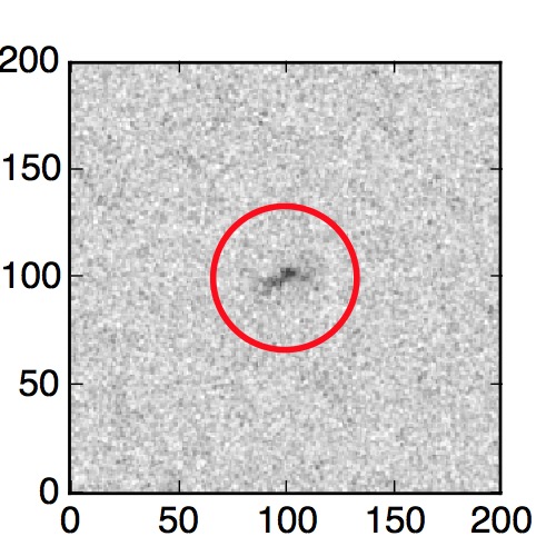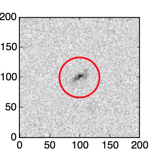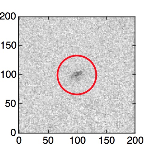 The red circle in the various panels is 1" in radius. The images are 6"x6".