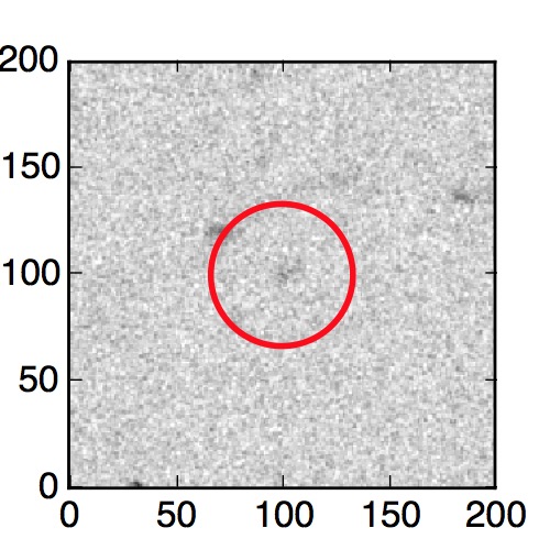The red circle in the various panels is 1" in radius. The images are 6"x6".