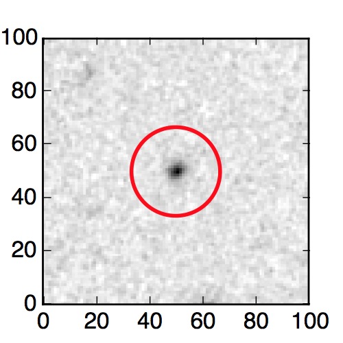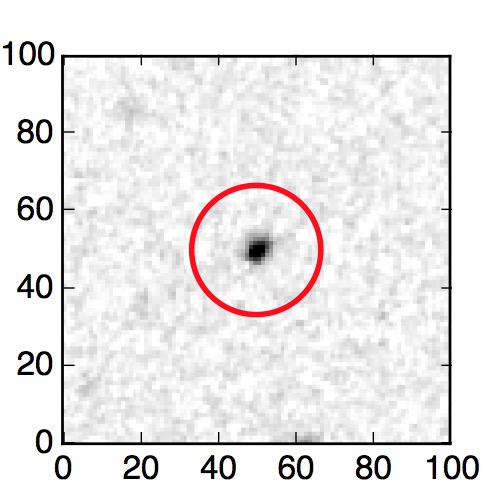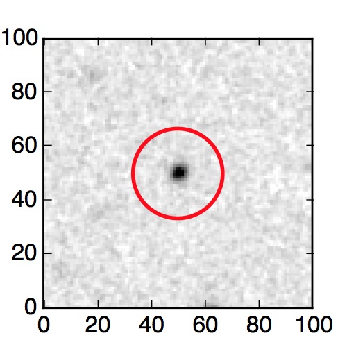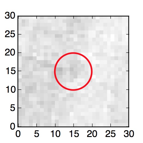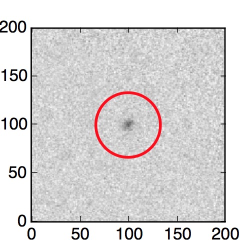 The red circle in the various panels is 1" in radius. The images are 6"x6".