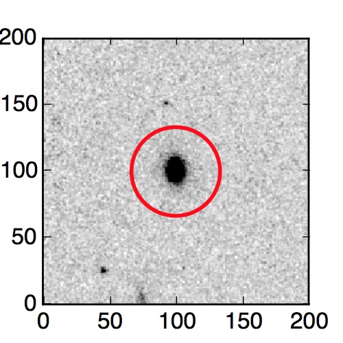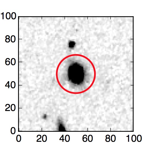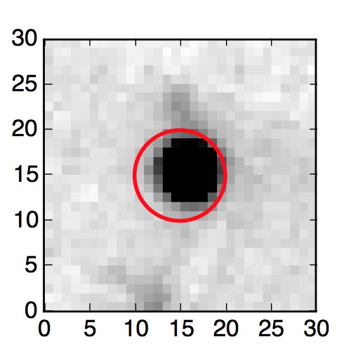 The red circle in the various panels is 1" in radius. The images are 6"x6".
