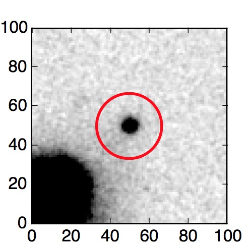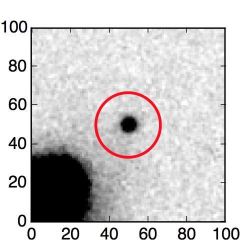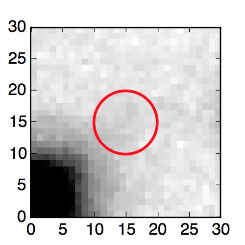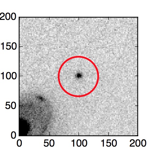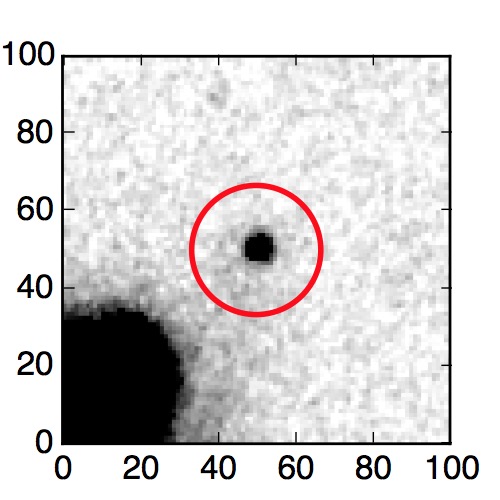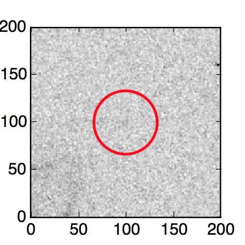 The red circle in the various panels is 1" in radius. The images are 6"x6".