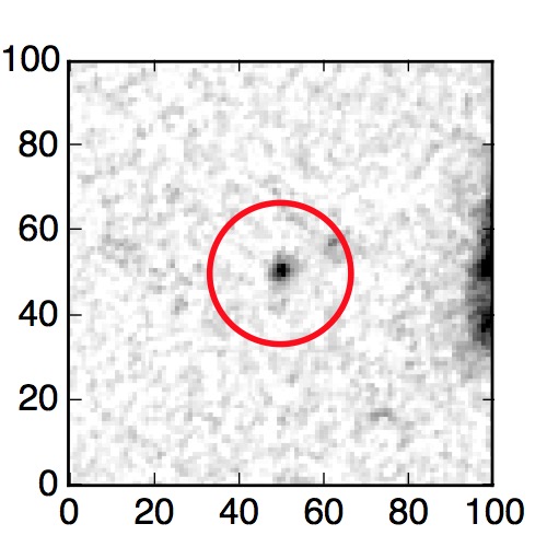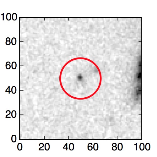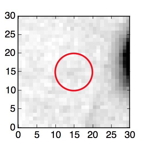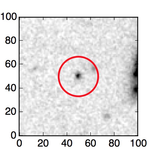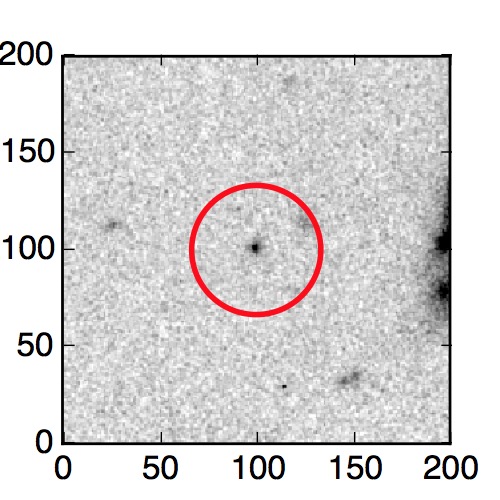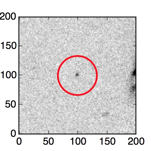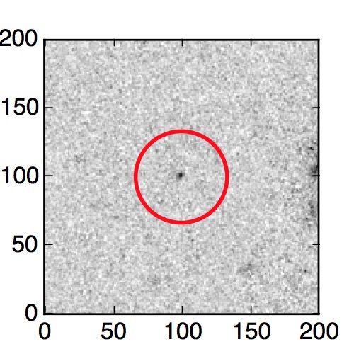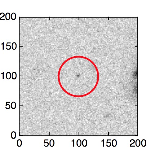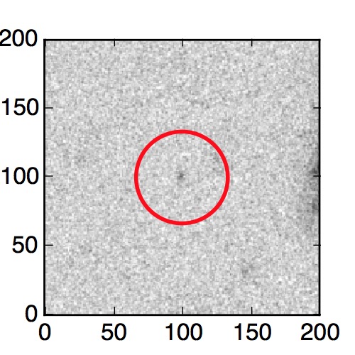 The red circle in the various panels is 1" in radius. The images are 6"x6".