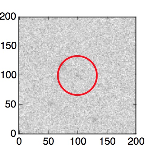 The red circle in the various panels is 1" in radius. The images are 6"x6".