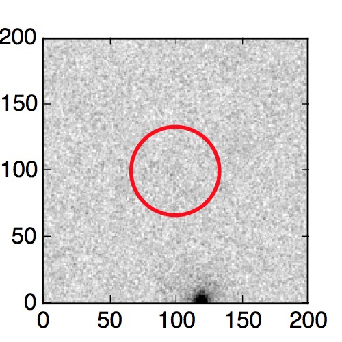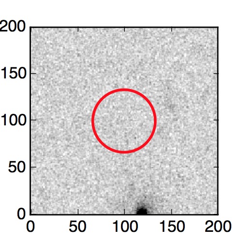 The red circle in the various panels is 1" in radius. The images are 6"x6".