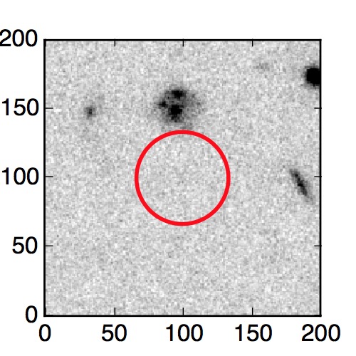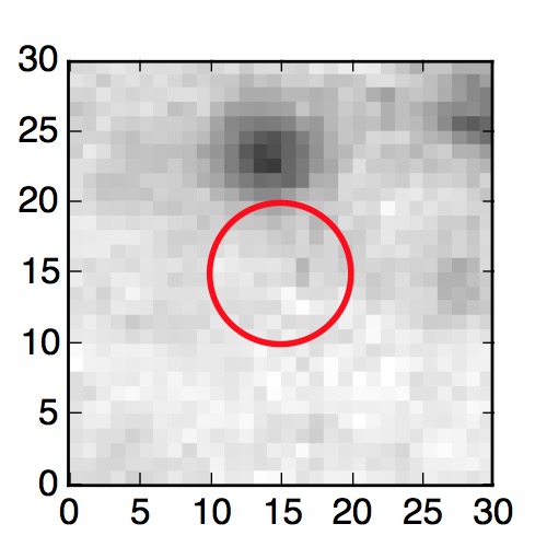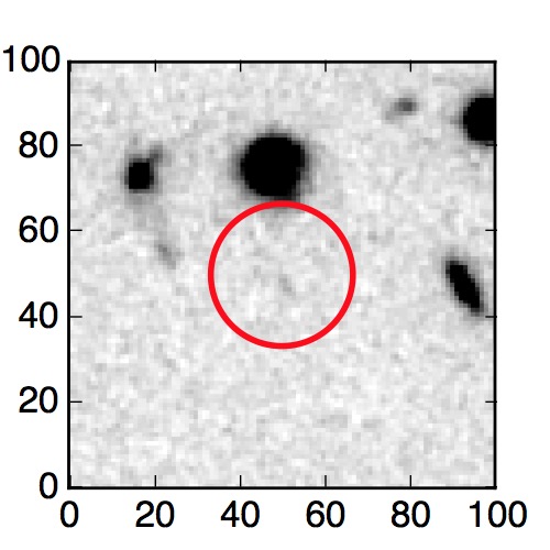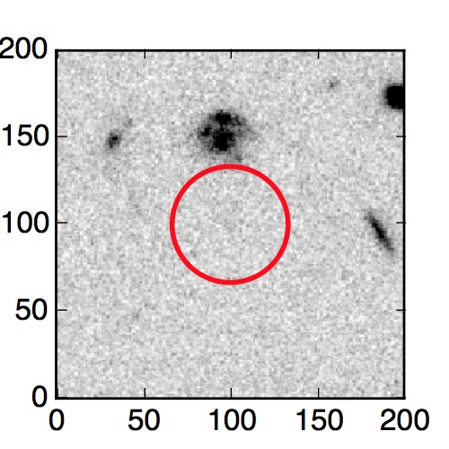 The red circle in the various panels is 1" in radius. The images are 6"x6".